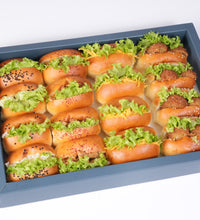 16 pcs of  chicken, cheese, cheddar cheese, and falafel sandwiches